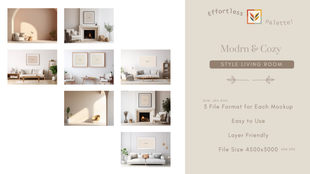 8 Frame Mockup Bundle, modern interior living room [2] , JPG, PNG only