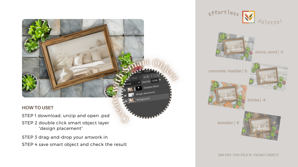 1 PSD files (4500x3000 px | 300 DPI) with smart object, layer friendly, easy to use